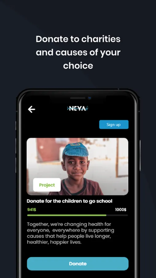 Neya brings all your charity needs into one place. We want to level the playing field and give all charities and causes an equal chance to access donations. Through Neya you can explore charities and causes that tackle different problems in the community and choose those that you want to support most. We don’t want doing good to be a cumbersome process of tirelessly searching for causes that you want to support, figuring out how to support them, and never knowing the extent of your support. Neya wants to make that act of doing good convenient, simple, and interactive. We champion all those in need and give the underserved a chance.