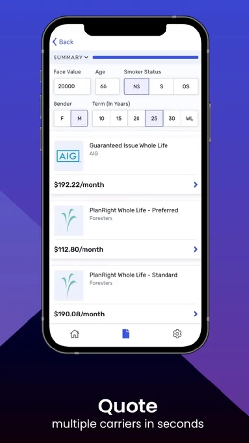 The Lobis app is a life insurance field underwriting tool designed to radically speed up the process of qualifying an individual for life insurance. Simply enter information, answer the questions, and get quotes amongst multiple carriers in real-time. Lobis works with or without wifi connection in order to provide optimal speed for anyone who uses it.