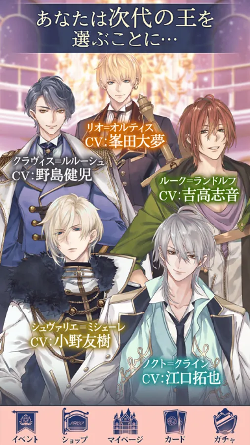 王宮、王子様、プリンセスなどの世界観を持った恋愛ゲームで、人気声優のボイスとともに恋愛を体験してみたい方におすすめです。