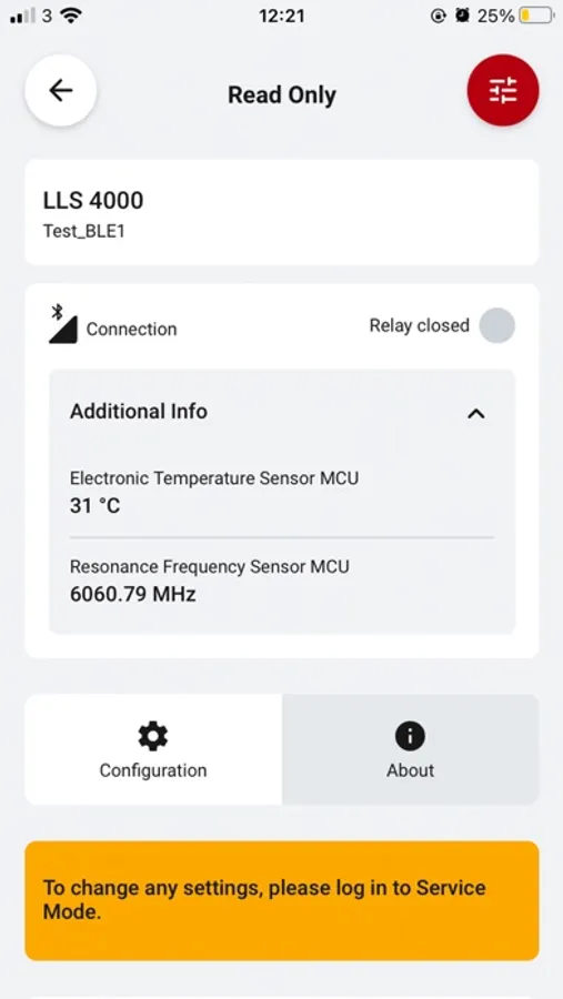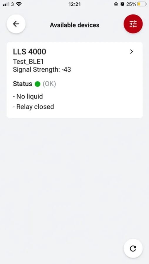 The LLS 4000 app connects remotely to any LLS 4000/4000U liquid level switch via Bluetooth. Once they are paired up, you can select between essential functions.