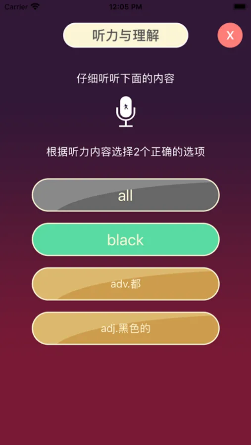 — 训练听力能力,做到听音辨形,听音识义(难度一般)。