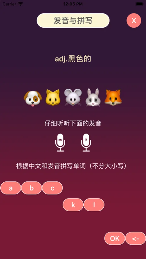 * 在中文提示之外,提供慢速和中速发音,增强拼写效果;