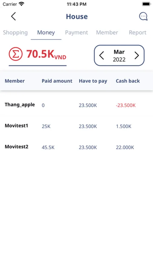 The amount of money each person will have to contribute and the amount each person will pay will be displayed monthly, making it easier to collect and spend.