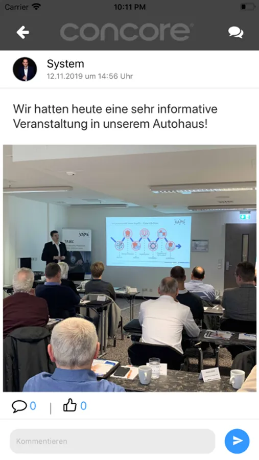 Die DealerNet Mitarbeiter App ist das ideale inhouse Kommunikations- und Informationstool für Autohäuser und bietet eine Timeline, in der Beiträge oder Fotos und Bilder allgemein oder in verschiedenen Gruppen veröffentlicht, bewertet und kommentiert werden können. Außerdem haben die Mitarbeiter die Möglichkeit, durch ein integriertes Nachrichtenmodul unternehmensgerecht zu kommunizieren und sich direkt, schnell und von überall auszutauschen.