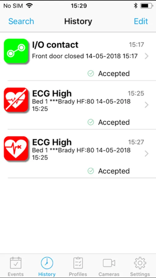 - alarms can be received using a Mobile or WiFi network, public or private