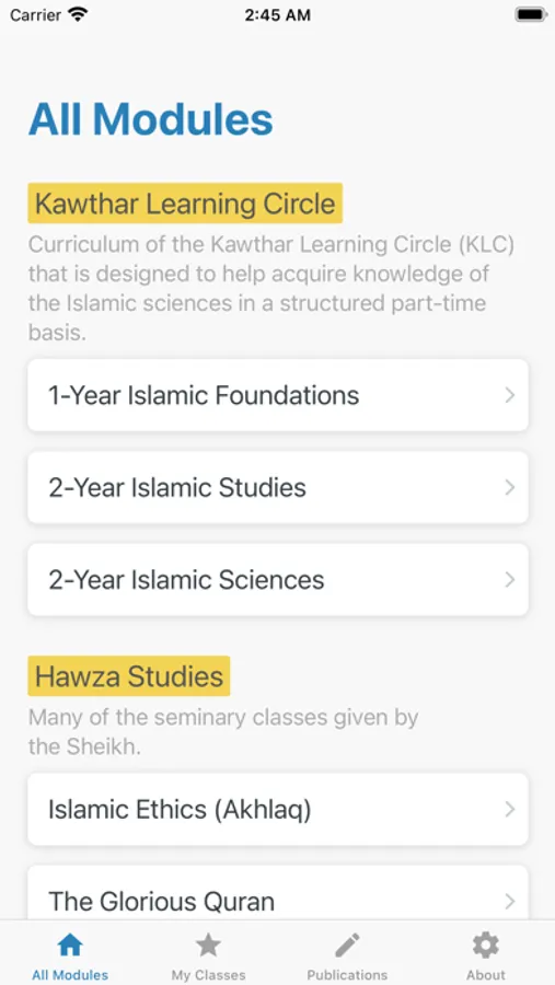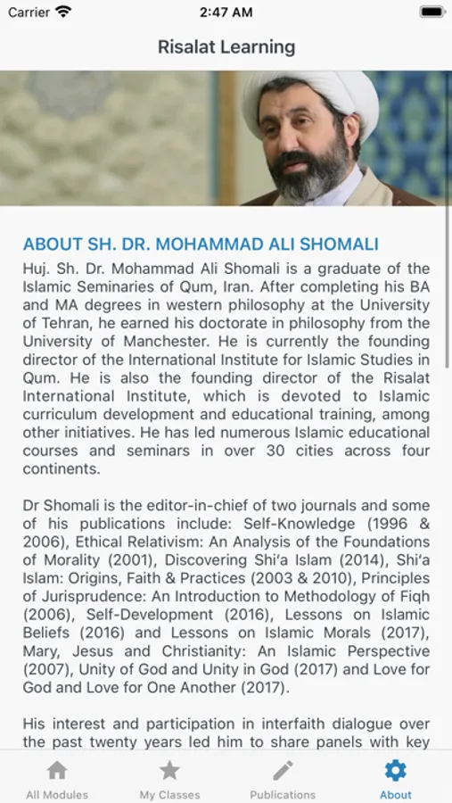 Curriculum based self-learning tool of the seminary lectures of Shaykh Dr Mohammad Ali Shomali. This app offers a vast collection of video lectures as well as books from the renowned scholar.