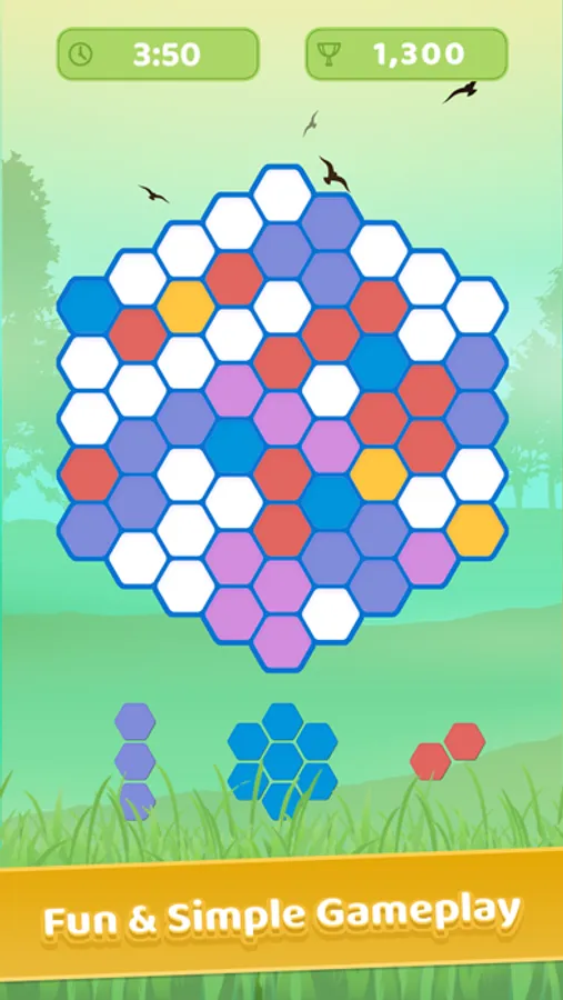 • Play beautiful puzzle game. Just drag a hexagon block and fit the board to clear lines and get score.