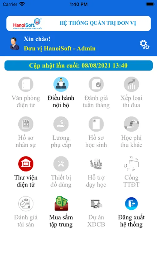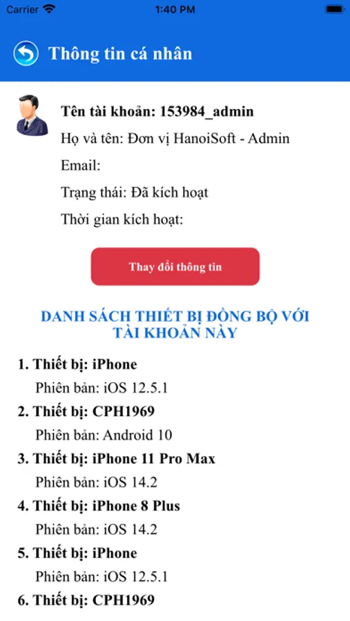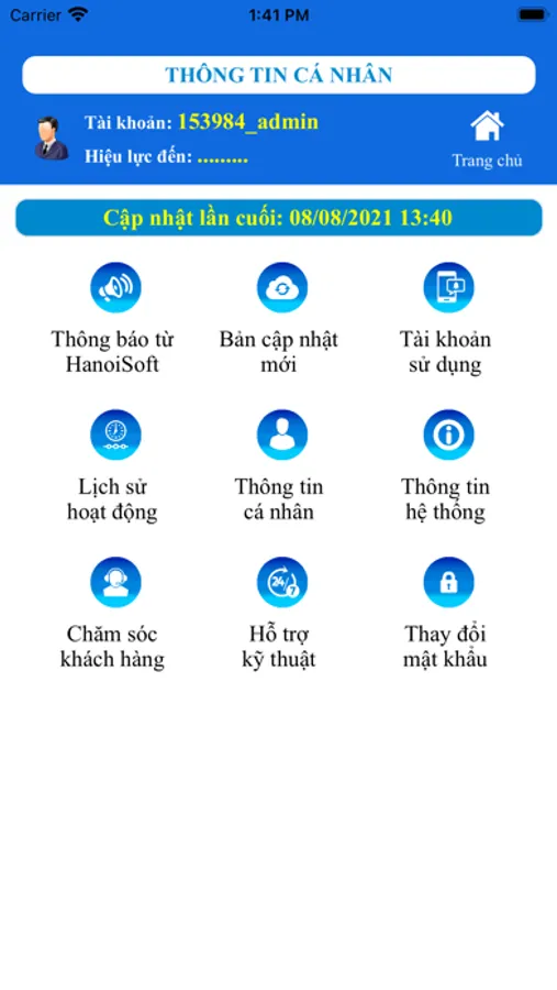 Tài khoản ứng dụng được liên kết với các hệ thống phần mềm HanoiSoft.