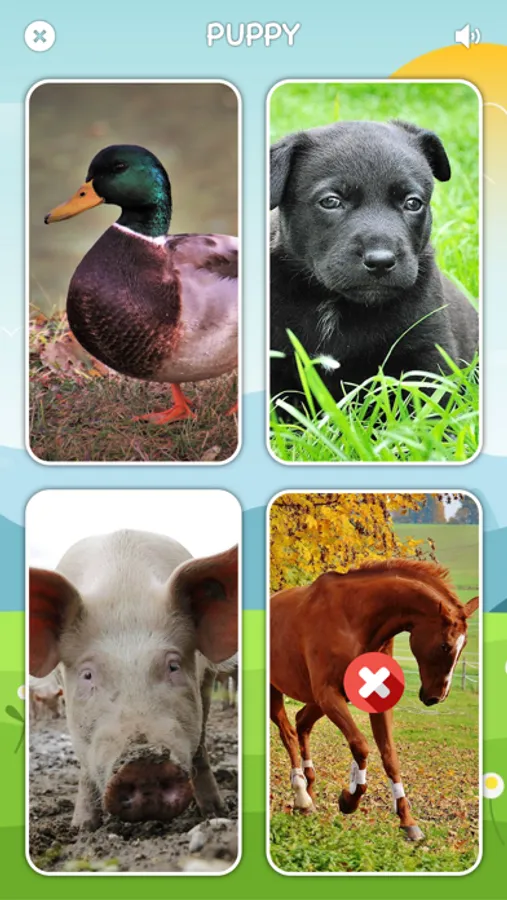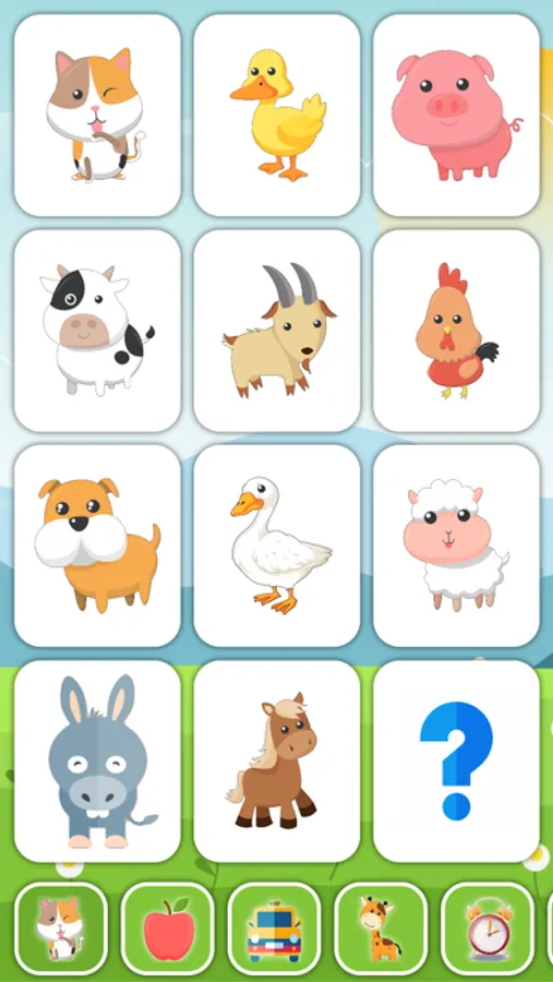 An easy "Guess" game is the best way to develop childrens. During normal viewing of pictures and listening to sounds, visual memory and listening skills are involved, so the learning process is easy and effective. Babies repeatedly review pictures of fruits and vegetables, surrounding objects, wild animals, domestic animals and vehicles and try to reproduce the sounds they hear on their own.