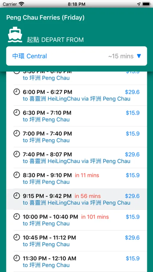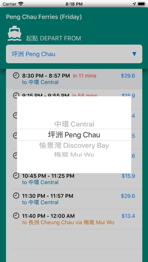 This app tries to consolidate all information of the different ferries that go to and from Peng Chau island in Hong Kong: