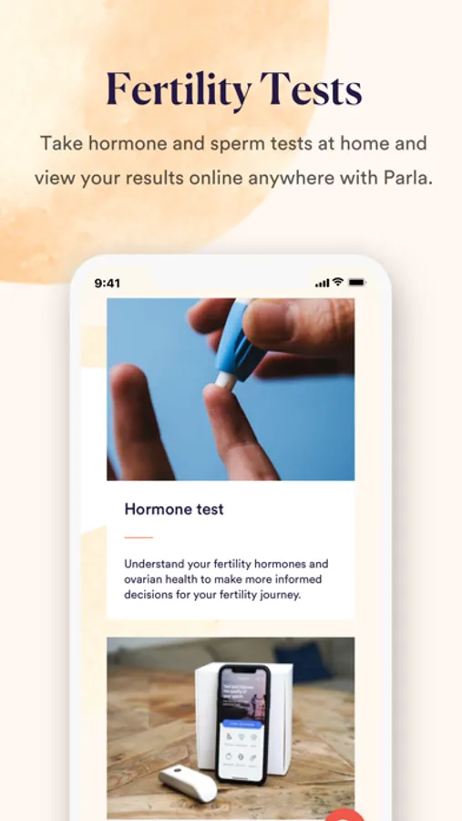 To help you assess your health and stay on track your Parla profile checks in on key fertility health indicators and keeps you up to date. You can also access free quizzes on a range of topics such a Endometriosis or Polycystic Ovarian Syndrome (PCOS) to see where you stand. Finally you can order at home hormone and sperm tests and then view your results online followed by support from fertility experts on Parla.