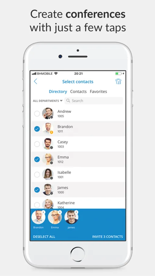 - Quickly view and use all company contacts