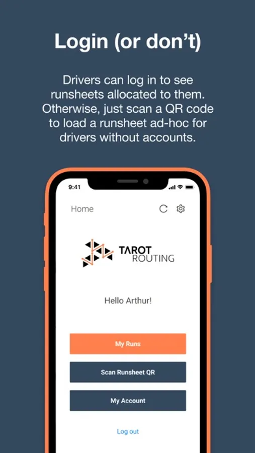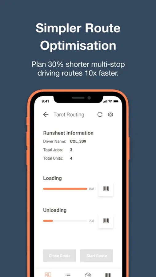 This app is for Drivers working for businesses using the Tarot Routing platform. The app connects with the web application to provide Drivers with the Runsheet, the addresses they will visit in the correct order.