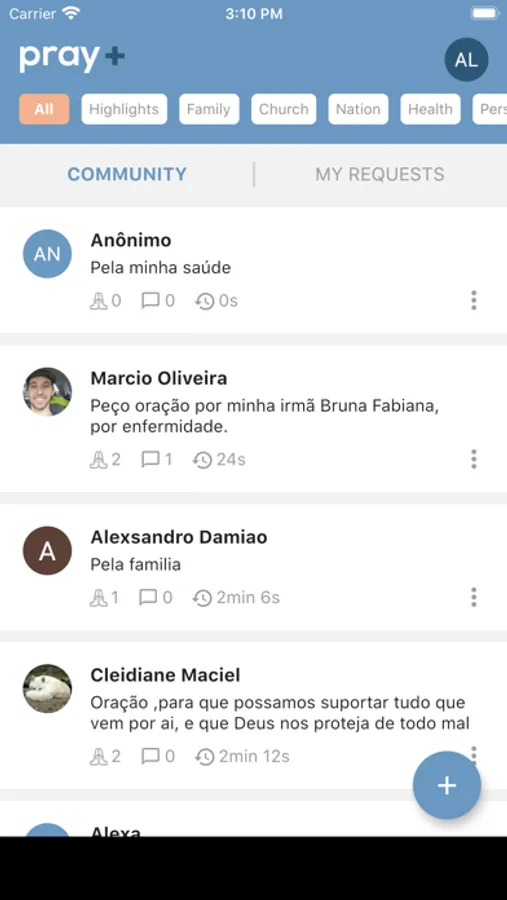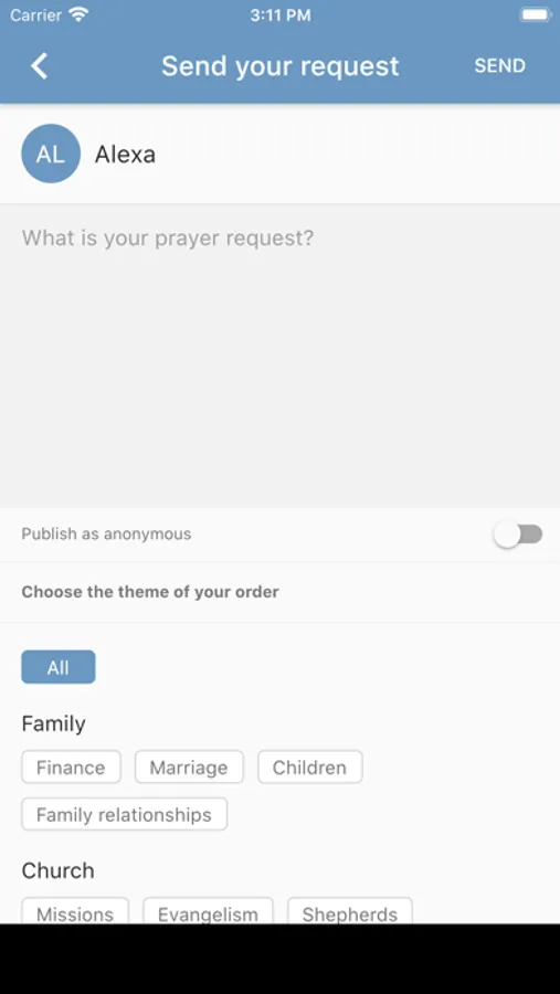 • Send anonymous prayer requests if you wish not to expose yourself.