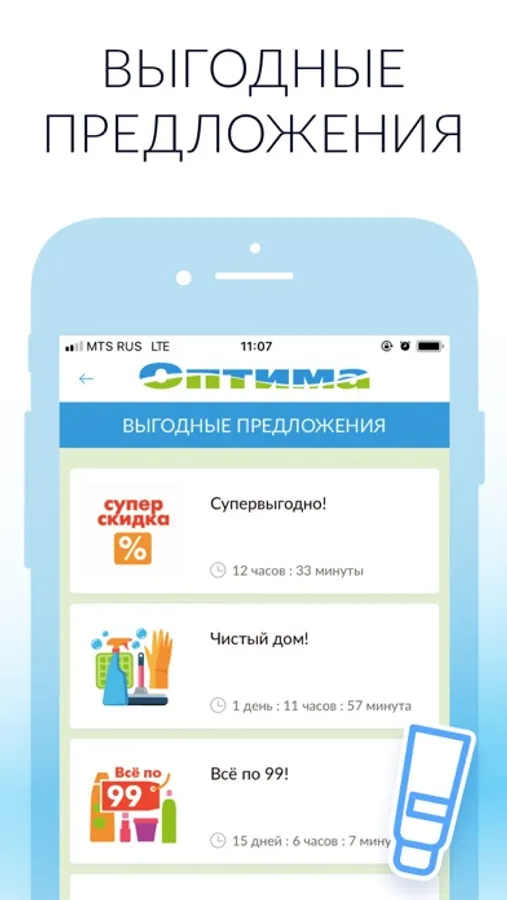 Покупать косметику, бытовые товары и товары для дома со скидкой? Легко! Скачиваете бесплатное приложение Моя Оптима – устанавливаете на телефон, регистрируетесь или заходите в свой личный кабинет – и всё! Вам доступны все скидки, акции, выгодные предложения, вам начисляются бонусы, которыми можно оплачивать свои покупки.