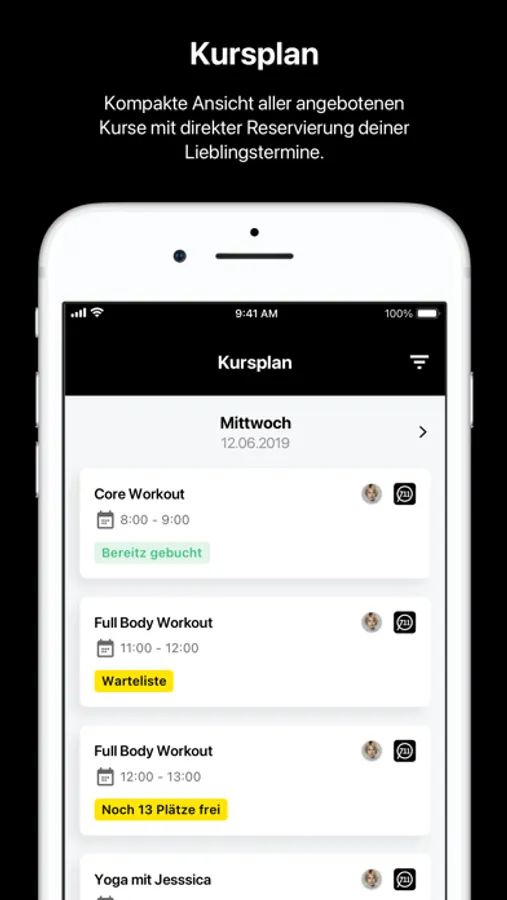 Kein Anrufen, kein persönliches Vorbeikommen – wer heute im Fitnessstudio einen Termin für einen Kurs mit begrenzter Teilnehmerzahl, ein EMS- oder Personal Training buchen möchte, macht das ganz bequem per App. Einfach eine Leistung auswählen, einen Termin festlegen und schon steht deinem Training nichts mehr im Wege. Sollte dir etwas dazwischenkommen, kannst du den Termin selbstverständlich auch wieder absagen – ein Knopfdruck genügt.