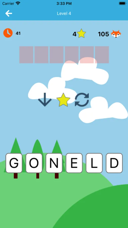 Tap the tiles to find the correct word and move on to the next level before the timer runs out. The faster you are the more stars you will accumulate. Stars can be used to reveal letters. You can also earn more stars by watching promotional videos. Enjoy!