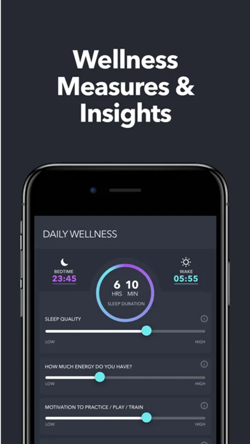Wellness Measures and Insights: Track your sleep, recovery, motivation and other ratings through the daily wellness tool. Monitor how you feel to help optimize your future practice, tournaments and training so that you remain at the top of your game.