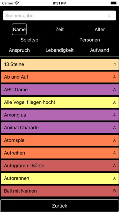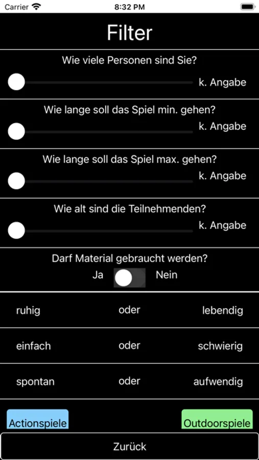 Besonders eignet die App sich für spontane Einsätze. Dadurch, dass sie kein Internet erfordert, sondern die Spiele alle offline verfügbar sind, kann sie immer und überall eingesetzt werden. Zum Beispiel wenn noch Zeit in der Gruppenstunde ist und spontan ein Spiel benötigt wird, einfach Alter, Dauer, Spieleranzahl und Art des Spiels auswählen und es werden alle Spiele angezeigt die zu der jeweiligen Situation passen.