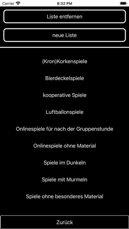 Aber auch bei der Vorbereitung einer Gruppenstunde ist sie hilfreich. Es kann eine eigene Gruppenstunde zusammengestellt und eine Liste dafür angelegt werden. Hierfür gibt es auch schon vorgefertigte Listen mit denen eine Stunde gestaltet werden kann, wie z.B.: Spiele im Dunkeln, Zeitungsspiele, Bierdeckelspiele, Korkenspiele, Kennenlernspiele und noch einiges mehr.