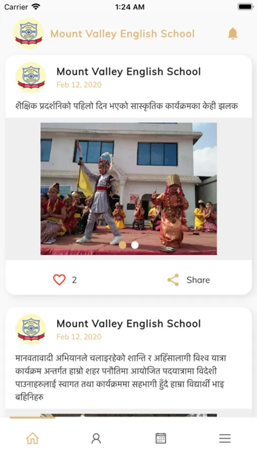 App for parents of students of Mount Valley English School.