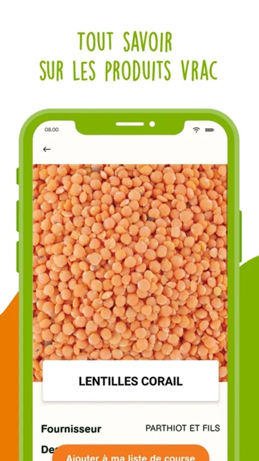Découvrez la 1ère application 100% vrac ! Ayez toujours sous la main vos recettes, listes de courses, info produits et info magasins !