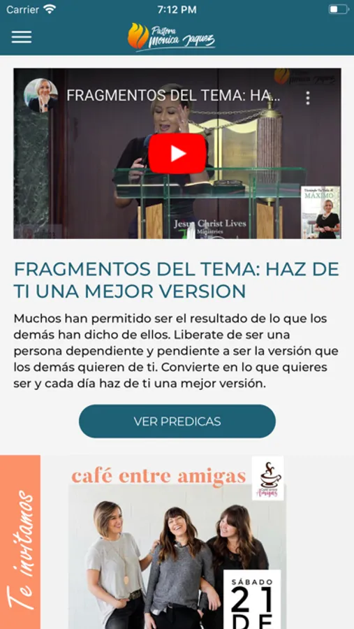 En el App de la Pastora Monica Jaquez podras acceder a videos completos de sus mensajes y eventos semanales . Nuestro propósito es que el evangelio del Reino se siga expandiendo y miles de personas puedan seguir los pasos de Jesús.