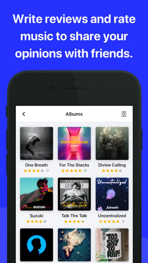• Write reviews and rate music to share your opinions with friends. Explore what others think and grow your passion.