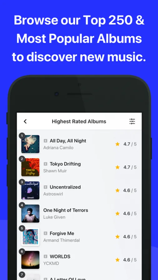 • Compile music into lists, like your favorite albums, ranking an artist's discography, or showing off your hidden gems.