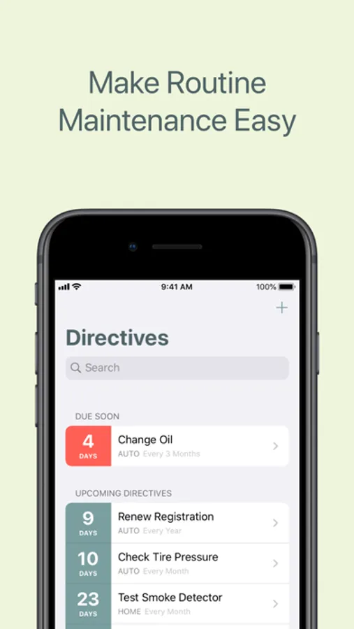 Directive helps you stay up to date with routine maintenance to safeguard the important things in your life.