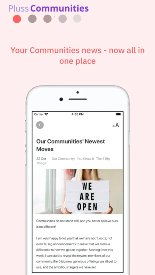 Create your own today at PlussCommunities.com, or have our dedicated team create the experience you have in mind. The future is so much closer, and brighter, with a Pluss Communities app for your community!