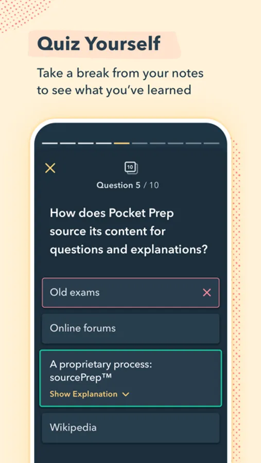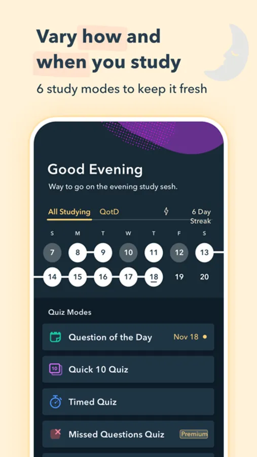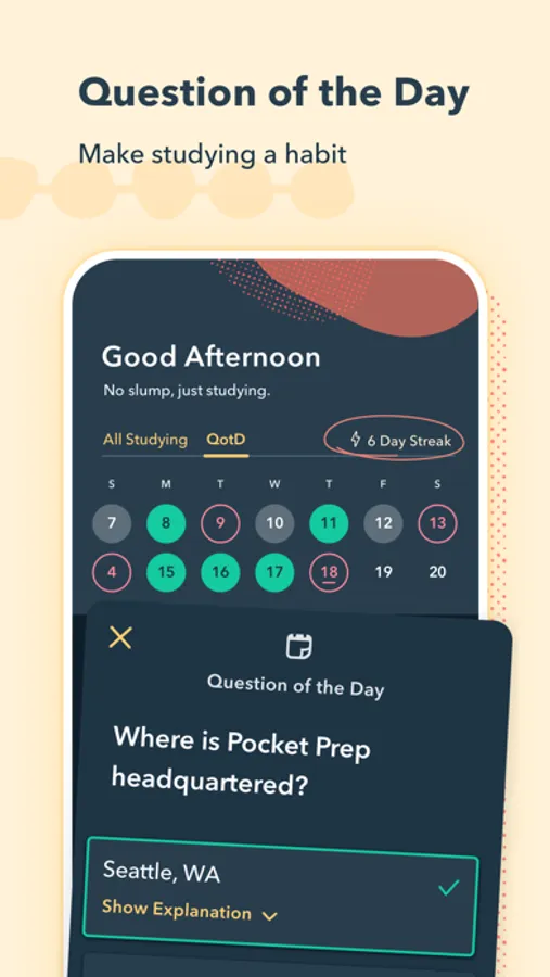 Scientific research shows that studying in short bursts over time is more effective than a handful of long study sessions. Our app is built with this in mind, giving you the power to study from your phone whenever and wherever it's convenient for you. Easily access practice questions while waiting in line, on public transit, on meal breaks, and more!