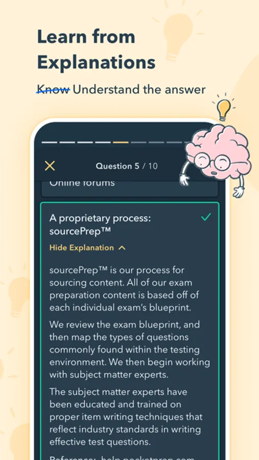 Pocket Prep has been helping people pass their exams since 2011. Our exam prep content is created using subject matter experts to craft fully original practice questions that are directly based off each individual exam blueprint and cover each section of the exam. Our proprietary sourcePrep™ process ensures these experts are trained in writing techniques that reflect current industry testing standards and practices.
