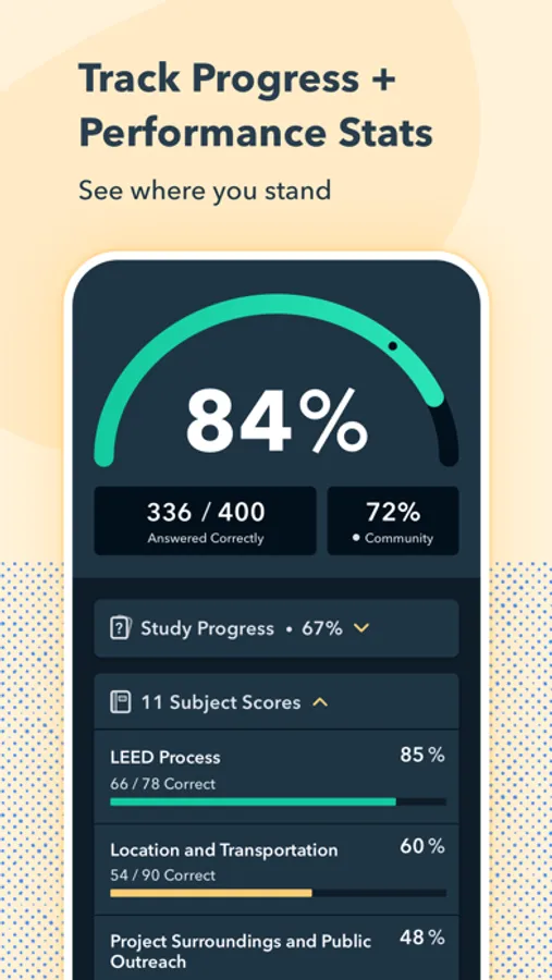 Scientific research shows that studying in short bursts over time is more effective than a handful of long study sessions. Our app is built with this in mind, giving you the power to study from your phone whenever and wherever it's convenient for you. Easily access practice questions while waiting in line, on public transit, on meal breaks, and more!