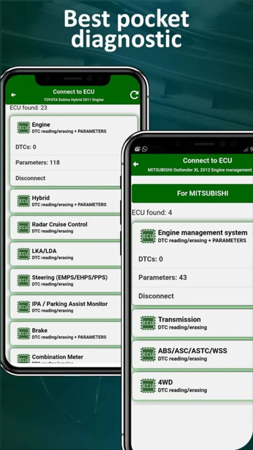 The app provides qualified car diagnostics: free of charge version supports the OBD2 standard, paid version operates according to the protocols of car manufacturers. Fault codes, warning lamps, dashboard, and information about the correct operation of a car are provided from the developers of the information system for car diagnosticians MotorData Professional http://motordata.net