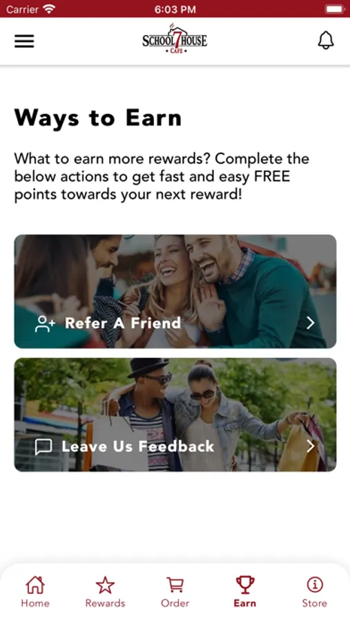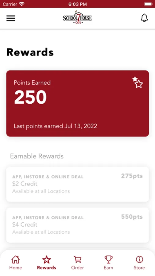 Schoolhouse 7 Cafe App - Earn and track your rewards at participating stores!