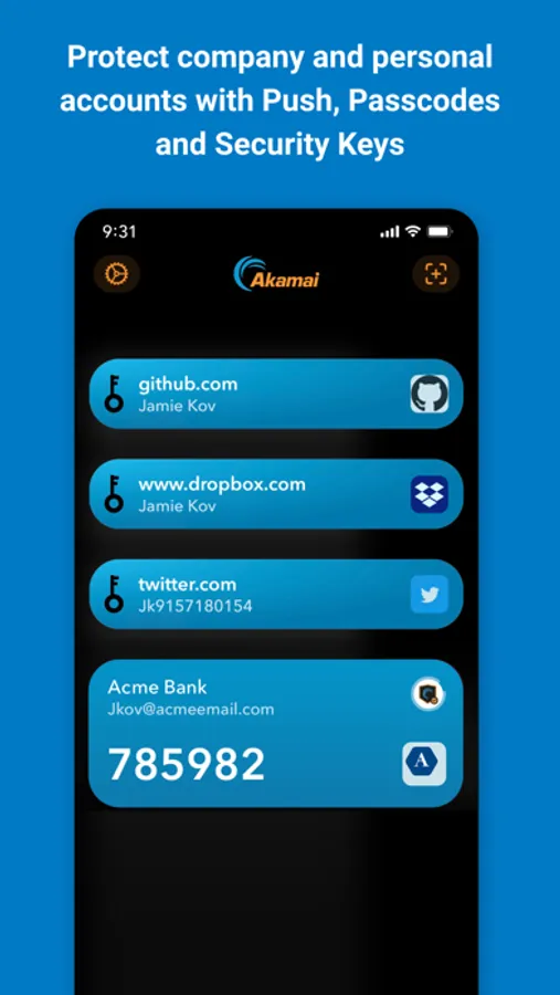 Additionally, Akamai MFA can generate one-time passcodes for offline access login and can receive regular push notifications for traditional tap-to-approve requests on iPhone, iPad, or Apple Watch. Passcodes are supported by many consumer websites such as facebook.com, twitter.com, google.com, and github.com.