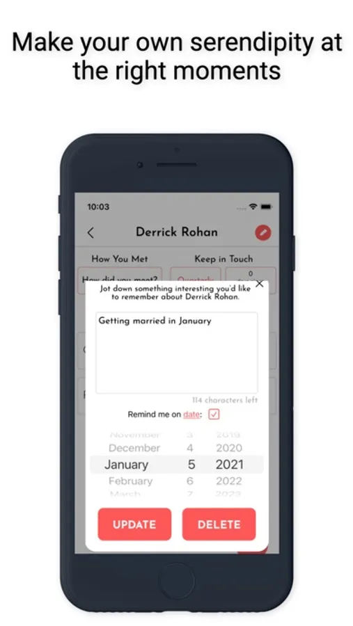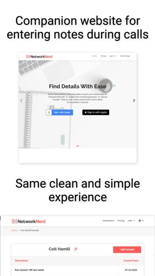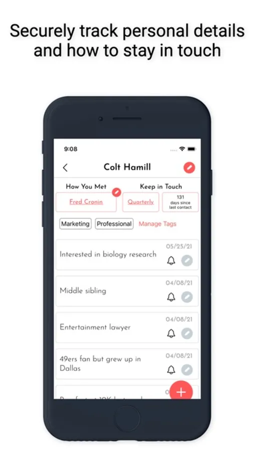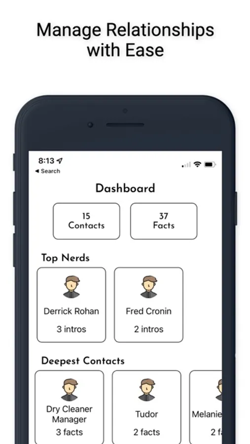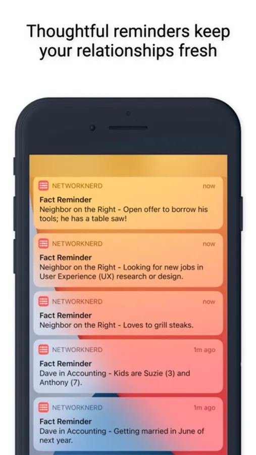 NetworkNerd keeps track of important information you learn about the people you meet and gently reminds you to keep in touch.
