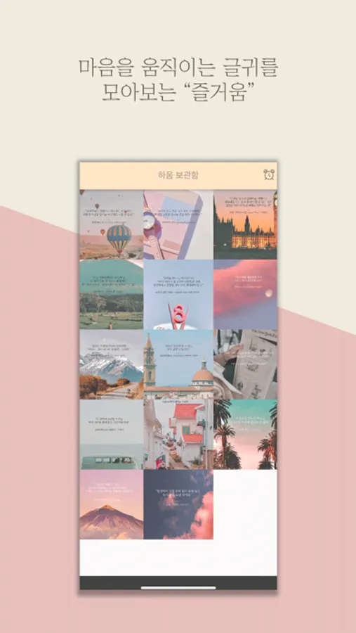 - 보관기능으로 본인이 감명 깊었던 게시물을 하움 어플 내에 있는 보관함에서 모아볼 수 있습니다.
