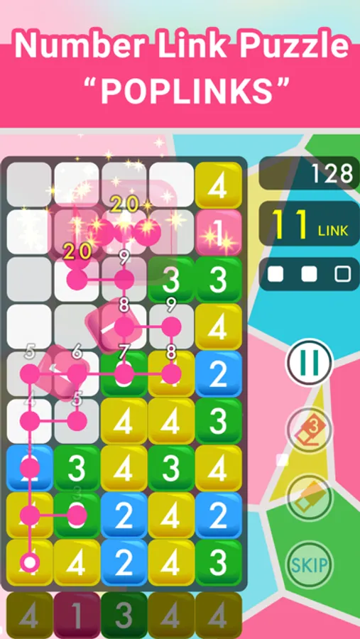 If you tap with more blocks linked than the number written on the block, it will be erased.