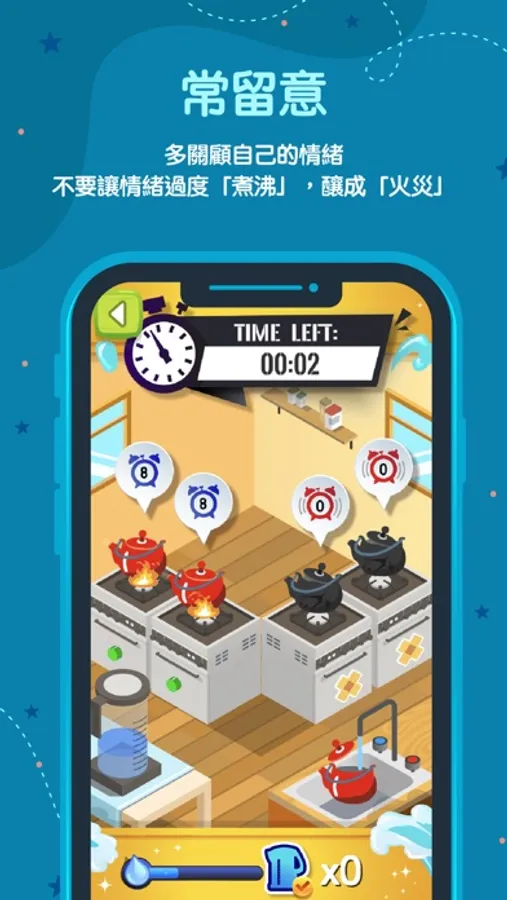 • 這小遊戲是要我們煮沸開水,讓一家人有足夠的開水飲用。