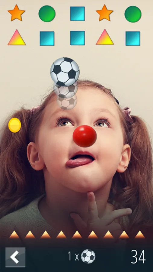 Keep the ball up... with your nose !! Prevent it from being pierced by the stakes, and collect points by hitting the irregularly-shaped objects.