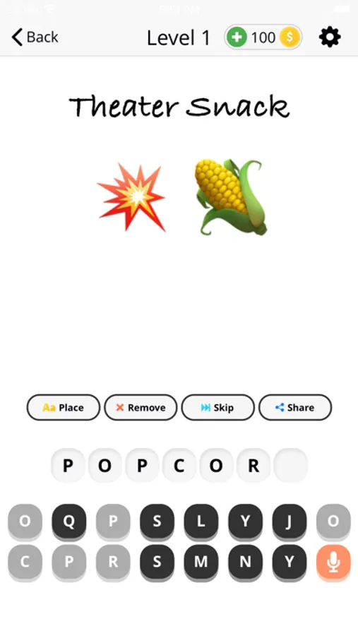 We show you a series of emojis and you need to guess what it means! Either tap the letters provided or use the microphone button to speak your answer! Can you clear all levels?