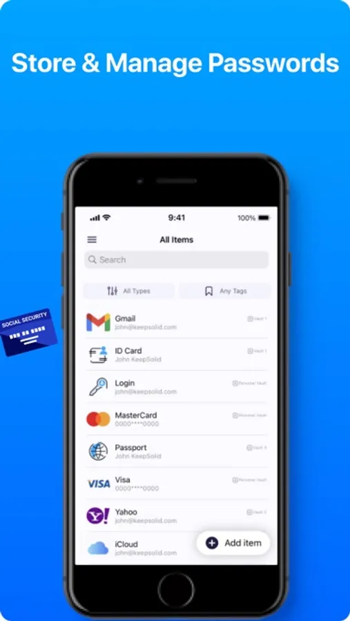 Store all your passwords, passport details, and credit cards in Passwarden and access them even if there is no internet connection.