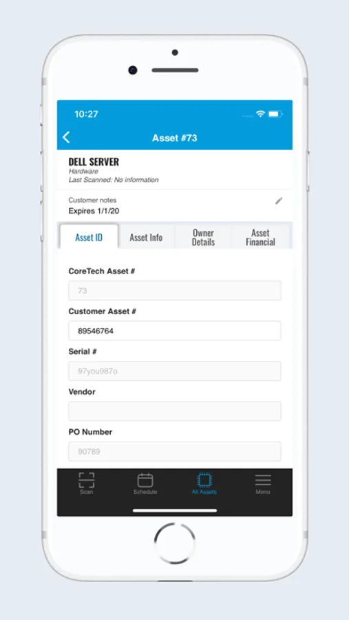 • Scan bar codes for integrated audit of all assets