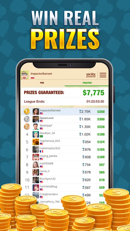 • Compete in daily Solitaire tournaments for a chance to win real prizes!