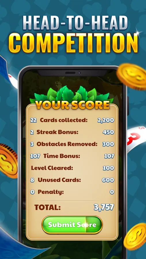 • Compare your score against real Solitaire players. Whoever has the highest score wins real cash!