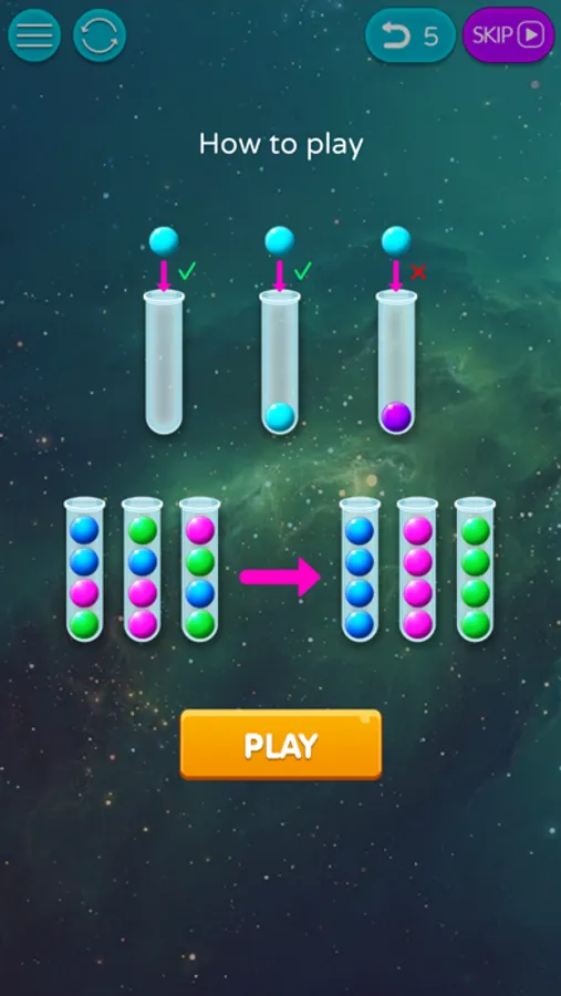 Our main mission is moving all the ball of same color into one pile. There are different number of balls and piles depends the difficulty of the game.