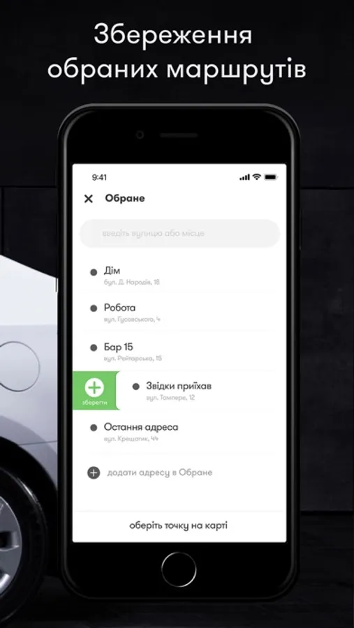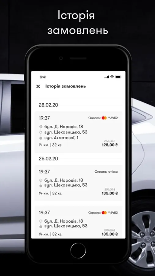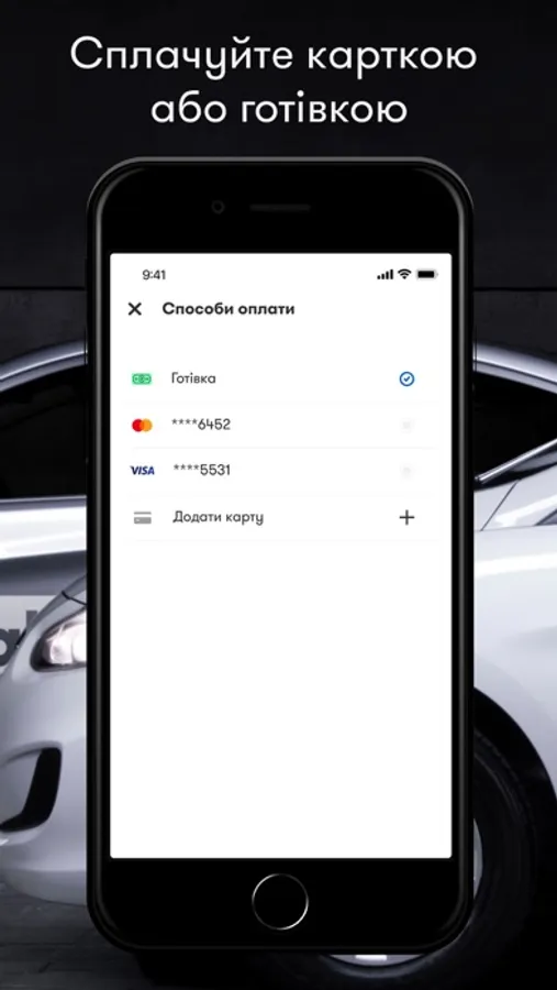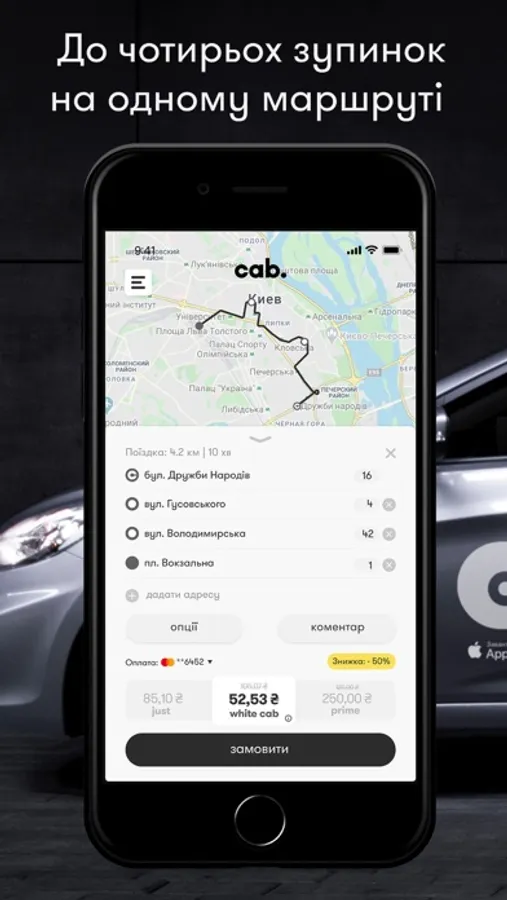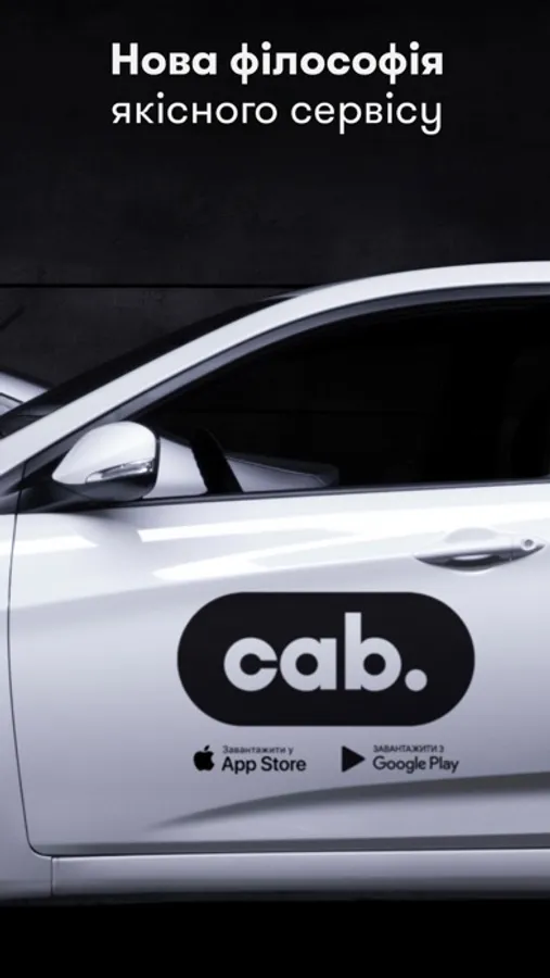 Завантажуйте додаток Cab, реєструйтеся, замовляйте автомобіль.