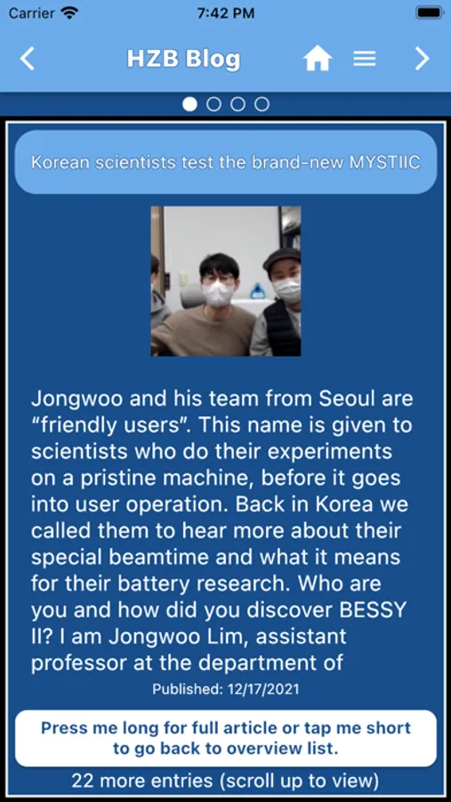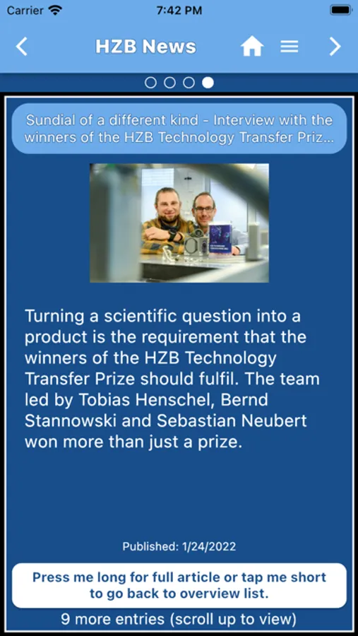 The HZB News App is the showcase for the Helmholtz-Zentrum Berlin für Materialien und Energie. It provides an insight into the institute, its current research, planned events and detailed information about the electron storage ring BESSY II. Further optional internal information and notifications about BESSY II events are available after login.
